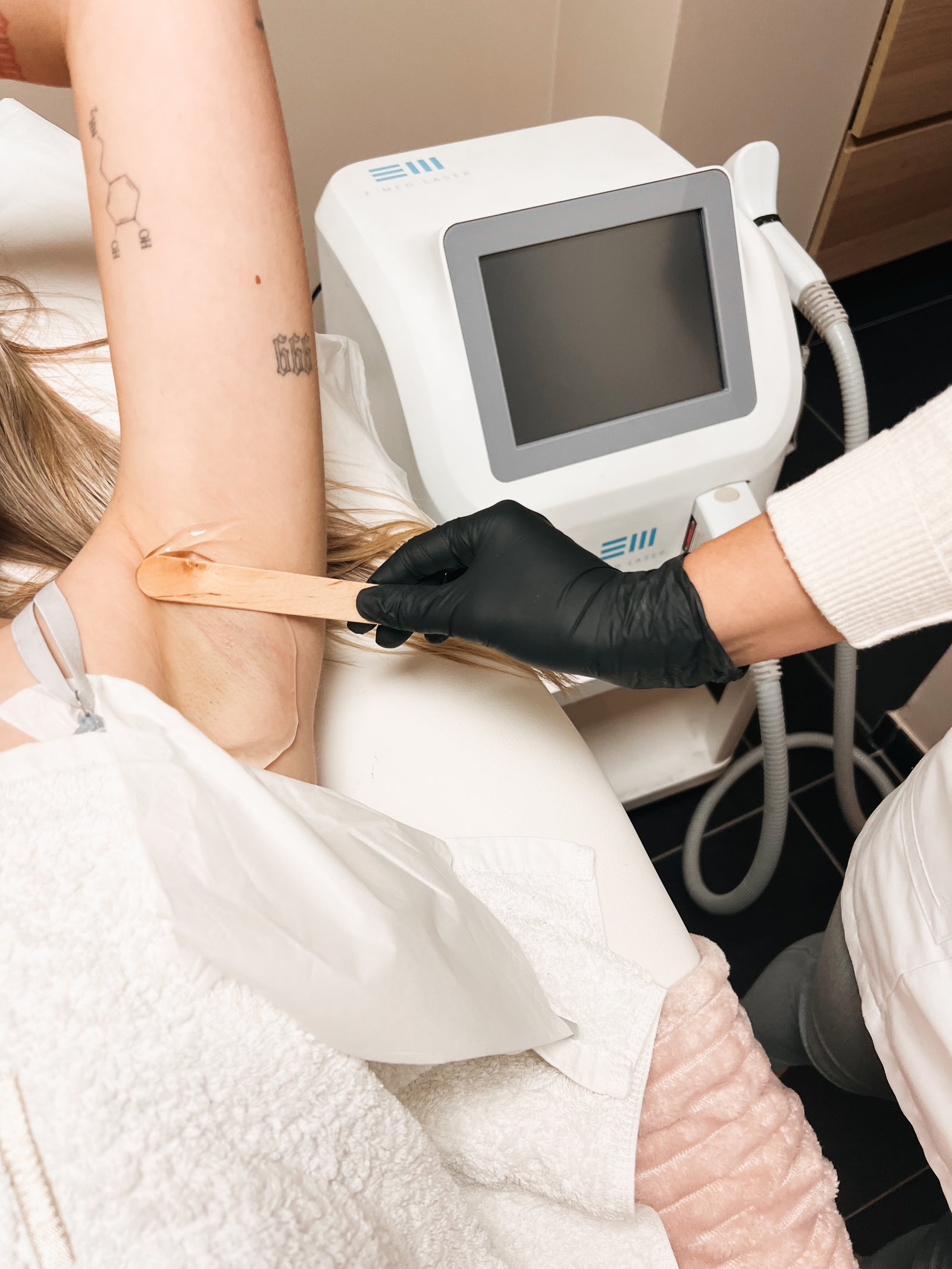 E-med laserontharing maakt gebruik van een krachtige diodelaser om ongewenst haar permanent te verminderen. De diodelaser zendt gecontroleerde pulsjes licht uit, die door het pigment in het haar worden geabsorbeerd. Dit beschadigt de haarzakjes, waardoor de haargroei wordt vertraagd en uiteindelijk gestopt.